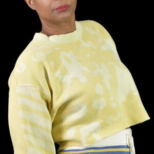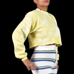 Vintage Lee Cropped Sweatshirt Yellow Bleached Cut Off Oversized Crewneck Large