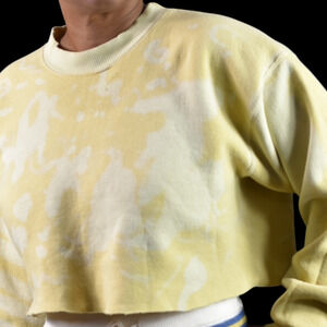 Vintage Lee sweatshirt FEATURES a bleached tie dye washed out look. Cropped length and a classic crew neck. Long sleeves. Soft, cozy feel. Made in USA.