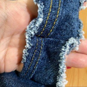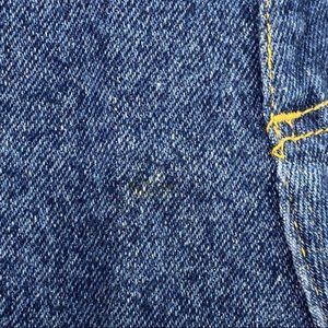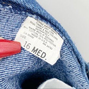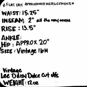 Super cute cut offs made from a pair of vintage lee jeans. Most likely from the 80s. Cotton/poly blend with no stretch. Dark wash mid-heavy weight denim. Vintage sizing indicates a 16, but they are a modern fit size 10 or a medium. In great vintage preowned condition. Small stain on the front. Cut off was done unevenly and one side of the inseam measures more than the other, but is 2 inches across. Was already this way when purchased. No other flaws noted. See photos.