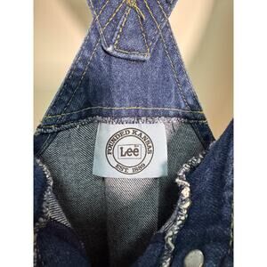 Classic vintage Lee denim overalls, women’s size 11/12, featuring the iconic cross-back suspender straps, button-front closure, and multiple pockets. These are true vintage workwear-style overalls with sturdy denim, brass Lee button hardware, and great stitching detail.