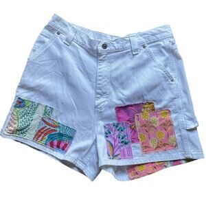 Vintage Lee Dungarees Floral Embroidered Patchwork Shorts Women’s White Size 30"