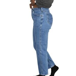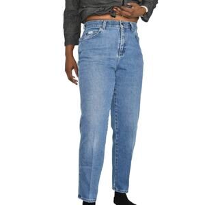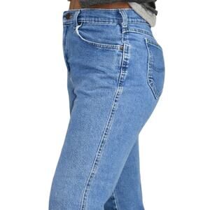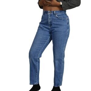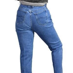 Vintage Lee Original mom jeans FEATURE an ultra high rise and tapered legs. Medium wash. 5 pocket style. Zipper / button closure. Broken in natural distressing.