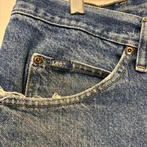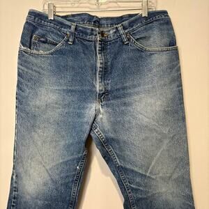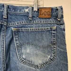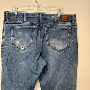 Vintage Lee Jeans Mens Straight Leg 38x30 Distressed Blue 1980s Streetwear Boho