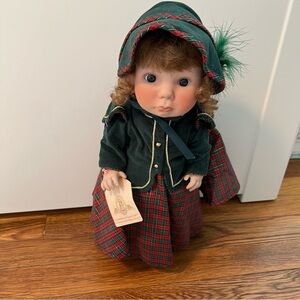 Great vintage condition, please reference photos. Vintage. Lee Middleton. Girl Holiday Doll. Red Hair. green hat. irish green corduroy dress with red and green plaid skirt. Gold details. Black boots. 14” Tall. Smoke free home. No trades, offers welcome.