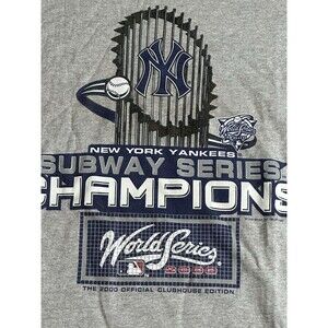 Vintage Lee New York Yankees T Shirt XL Gray Blue White 2000 Baseball MLB Y2K