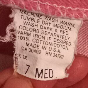 Lightly used. Vintage 80s costume quality "Mom Jeans", high rise style, but with a slightly tapered leg. Have a small dark set of stains on right leg see photos. Other leg has a small factory error showing up as a small white spot. Very nice pink color and very rare. Might not see many around anymore. Made in the U.S.A.