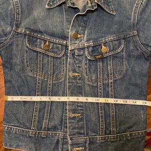 Super cute vintage Lee Rider Jacket. In really great shape, please see picture of minor flaw with stitching. Size tag is worn off, but fits likes a small.