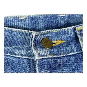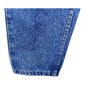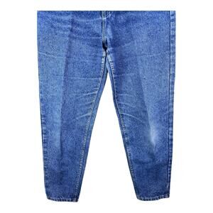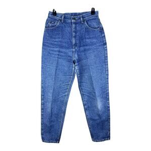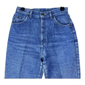 Experience the classic comfort and style with these Vintage Lee Riders Tapered High Rise Jeans. Crafted in the United States, these jeans are a nod to 80s fashion with their acid wash denim and solid blue color. The high-rise waistband, featuring a button and zip closure, pairs perfectly with a variety of tops and shoes for a timeless look.