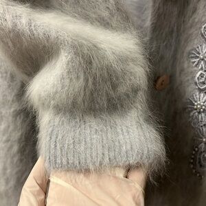 Vintage Lee Sands Angora Cardigan–Pearl Beaded Floral Embroidery–Made in Korea