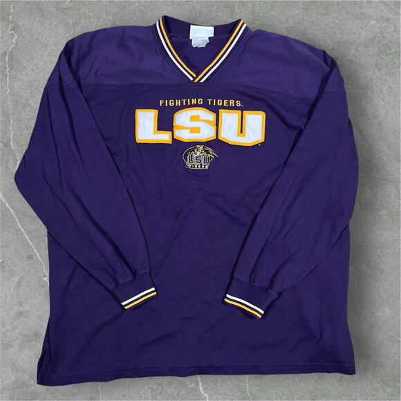 Vintage Lee Sport LSU Louisiana Tigers Purple Embroidered Pullover V-Neck 2XL