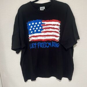 Vintage Lee Sport Mens Black American Flag Let Freedom Ring Y2K Cotton Graphic Tee XXL