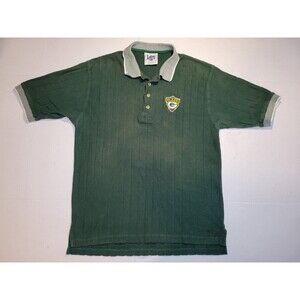 Vintage Lee Sports Green Bay Packers Ringer Polo Green Ribbed Embroidered Mens L