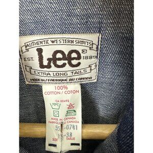 Lee Western Denim Shirt Men’s 16.5 34 Pearl Snap Selvedge Made in Canada