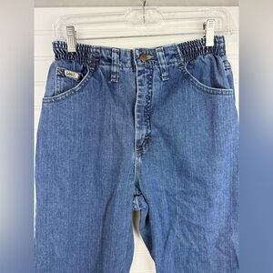 Vintage Lee women’s medium wash denim blue jeans. Size 6 medium. Cinched elastic, stretch at sides. Excellent used condition.