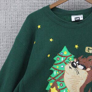 Vintage Lee x Taz Manian Devil Sweatshirt Mens XL Green Looney Tunes Christmas