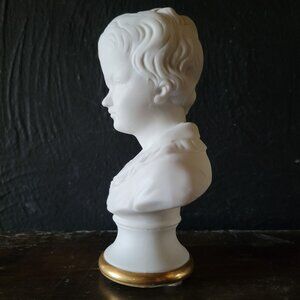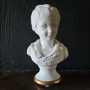Vintage Lefton Bisque Porcelain Bust Of Boy With Gold Accent