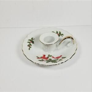 Vintage Lefton Cardinal Candle Holder, Christmas Holly Candlestick, 04554