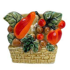 Vintage Lefton Ceramic Fruit Basket Weave Napkin Holder