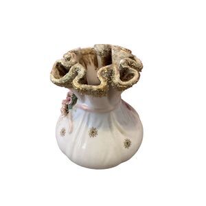 Vintage Lefton China Hand-Painted Floral Applique Vase 3D Art