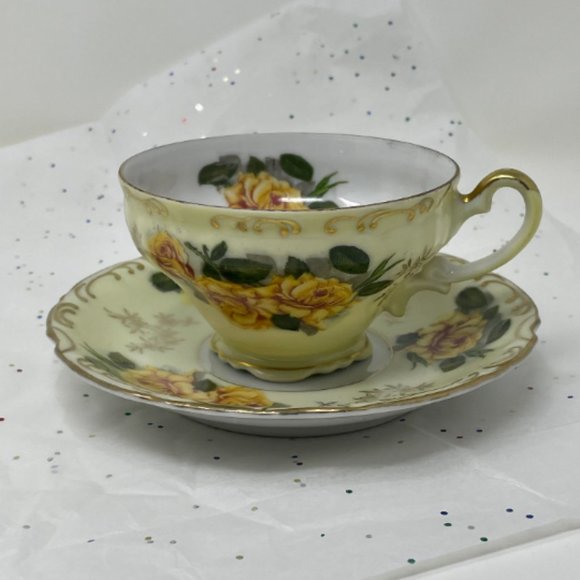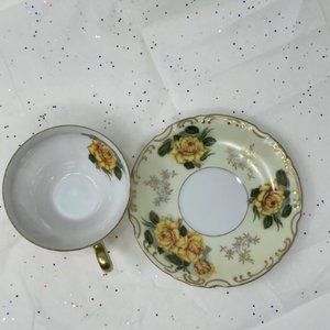 Vintage Lefton China Yellow Floral Peek a Boo Luster Wear Footed Teacup Saucer