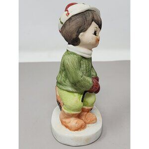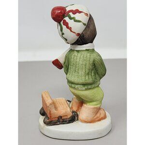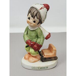 Vintage Lefton December Boy Christmas Figurine Pulling Sled