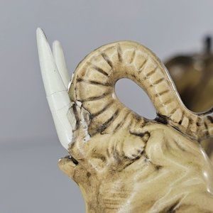 Vintage Lefton Elephant Figurine Set H2674 Trunk Up Lucky Gulfgate *FLAWS*