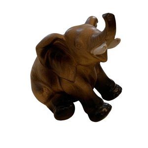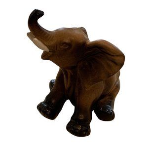 Vintage Lefton Elephant With trunk up Brown white black # H6980 3 3/4"