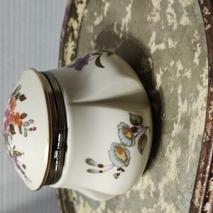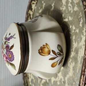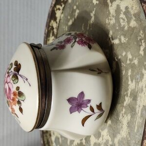 Vintage Lefton Floral Hinged Top Floral Trinket Box, small flaw in the finish, barely noticeable. Would be cute holding jewelry on a dressing table.