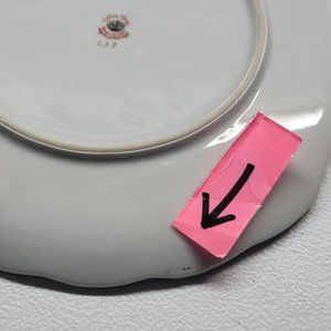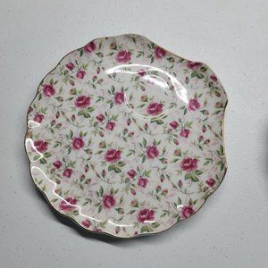 Set of 2 Vintage Lefton (Rose Chintz pattern) Snack plates. Unfortunately no cups. Made between 1953-1971. These beautifully hand painted hand gilded plates were used as luncheon plates so ladies could mingle while having their Tea & Cucumber Sandwich. 😉 They measure about 8inches across and about 1/2 inch deep. Pattern # 637
