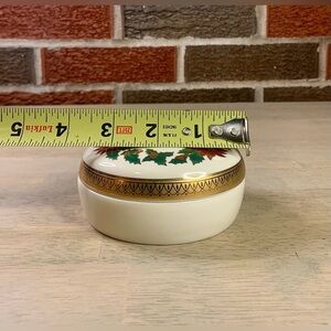 Vintage Lefton Holly Berry Holiday Collection Round Trinket Box Candy Music Box