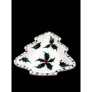 Vintage Lefton Holly Candy Cane Open Candy Dish Christmas Tree Shape Japan