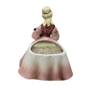 Vintage Lefton Lady Figurine Planter With Basket Pink/White Ceramic