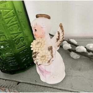 Vintage Lefton November Birthday Angel Bisque Porcelain Flower Basket KW3332