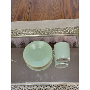 Beautiful cup and saucer set from Lefton. All hand painted. Soft matte mint green background, purple lilacs and a bit of gold trim