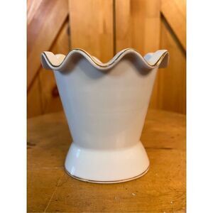 Vintage Lefton White China Vase with Pink Applied Flowers Gold Trim Japan #553 4x4”