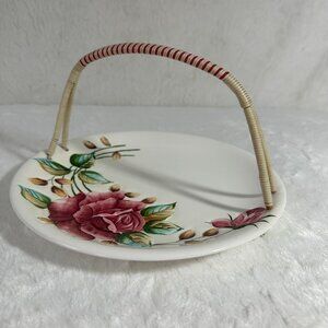 Lefton's China Americana Rose Round Serving Plate with woven handle No. 939