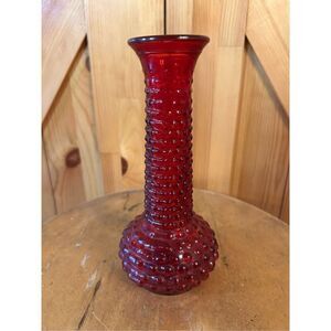 Vintage Lefton E.O. Brody Hobnail Ruby Red Flash Glass Bud Vase 7.5" Tall It has no chips or cracks, but there is wear to the red flash on the top edge. (8136)