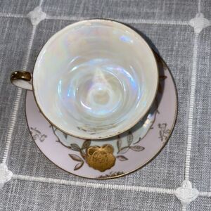 Vintage Lefton Iridescent Gold Rose Cup and Saucer Cup Set Hand Painted.