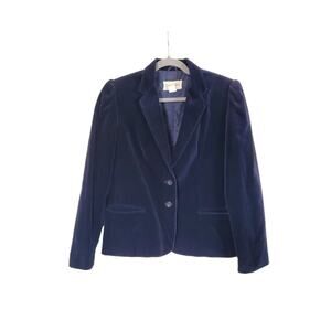 Vintage Legends Dark Blue Velvet Blazer with Long Puff Sleeves 2-Button Size 6