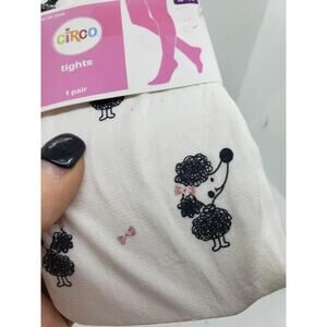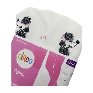 Features: Stretchy nylon-spandex knit; fun dog/poodle graphic with pink bow accents; classic girls hosiery
