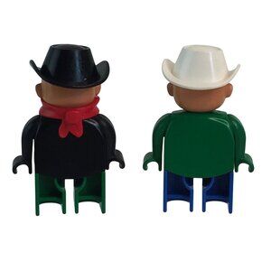 This lot includes 10 vintage Lego Duplo figures featuring a variety of themes including firefighter, construction, and western. Perfect for collectors or imaginative play.