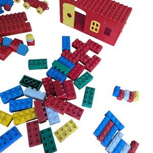 Lot includes some great vintage pieces that are harder to find: Shingles, Building Plates, a Boat, Windows, Cars, Duplo Lego Guy, Crane attachment, Horse, and more!