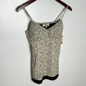 Vintage Lei Y2K Tank Top Women Large Cream Ditsy Floral Coquette Fairy Deadstock