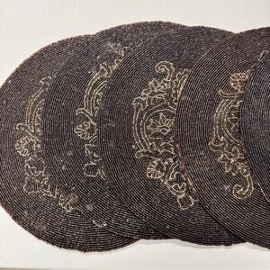 Vintage Leila’s Linens Brown Glass Bead Placemats Set 5 90s Boho Round