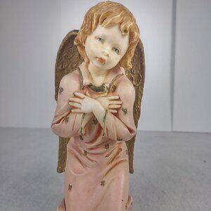 Vintage Lello Kneeling Angel Figurine Large Gold Wings Italy 5501 8 inches Tall