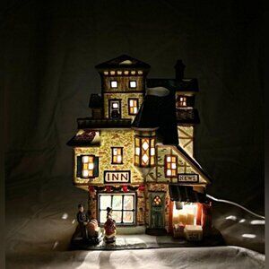 This is a Vintage Lemax Enchanted Forest Christmas Village Porcelain Lighted Glass House is the Inn and the News. It was a Menard's Exclusive and is in excellent condition in the original box.