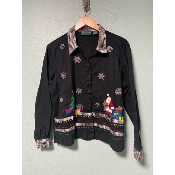 Vintage Lemon Grass Studio Women's Christmas Holiday Party Santa Claus Shirt L