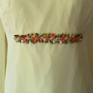 Gorgeous delicate vintage hippie dress with orange mini flower embellishments.