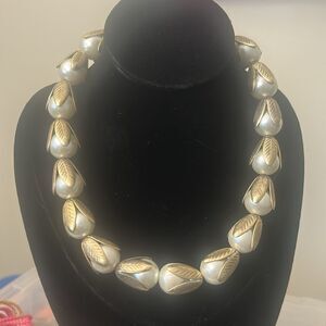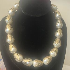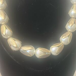 Vintage Lenora Dame Leaf & Faux Pearl Statement Necklace, 18"