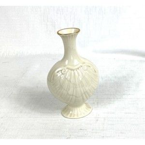Vintage Lenox Aegean Shell Bud Base Ivory W/ Gold Rim 6.5” Tall Made in America